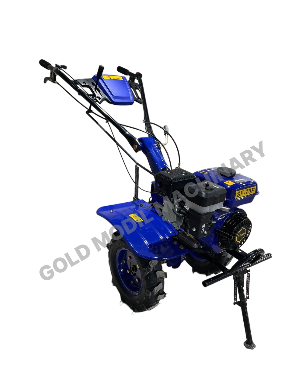Brand GOLD MODIL Model No. FS70P Displacement 212cc Power (HP/kW) 7.5 HP/4.2 kW Fuel Tank Capacity 3.6 Liters Blade Type 32 Blades (2+1+1 Shaft) Tyre Size 4.0-8 Solid Tyres Gear Box Regular Gear Box easy to operate